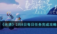 光遇2月14日每日任务怎么做?《光遇》大蜡烛的位置每天都在变化,玩家可以在游戏中寻找并收集大蜡烛,今日2月14日的大蜡烛位置已经更新,相信很多玩家还不清楚今日大蜡烛的位置,下面小编给大家分享一下光遇2月14日的大蜡烛具体位置,一起来看看吧。《光遇》2月14日每日任务完成攻略:一、今日任务1、给一位朋友送礼2、在霞谷重温先祖的美好回忆3、净化10株黑暗植物4、在霞光城拱门冥想二、任务攻略今日任务攻略如下:以上就是3DM小编整理带来的《光遇》2月14日每日任务完成攻略,更多相关游戏攻略,请点击关注3DM手游网!