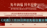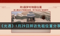 光遇1月29日拜访先祖在哪?光遇最近开启了拜访先祖的任务,玩家可以通过拜访先祖获得许许多多的奖励,一些小伙伴还不清楚今天要拜访的先祖在哪,下面小编就给大家带来了光遇1.29拜访先祖位置分享,有需要的小伙伴一定不能错过,快和小编一起来了解看看吧。 《光遇》1月29日拜访先祖位置分享:今日拜访【梦想季】先祖,具体位置如下: 以上就是3DM小编整理带来的《光遇》1月29日拜访先祖位置分享,更多相关游戏攻略,请点击关注3DM手游网!
