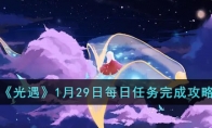 光遇1月29日每日任务怎么做?《光遇》每天都会更新四个日常任务,玩家可以通过完成任务来获取蜡烛,那么在2023年1月29日的每日任务要怎么做呢?小编给大家带来了今日四个任务的完成攻略,有需要的小伙伴不要错过,一起来看看吧。 《光遇》1月29日每日任务完成攻略:一、今日任务 1、二人合力开门2、在雨林重温先祖的美好回忆3、净化10株黑暗植物4、在密林遗迹冥想二、任务攻略 今日任务攻略如下: 以上就是3DM小编整理带来的《光遇》1月29日每日任务完成攻略,更多相关游戏攻略,请点击关注3DM手游网!