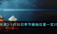 光遇1月30日大蜡烛在哪?《光遇》大蜡烛的位置每天都在变化,玩家可以在游戏中寻找并收集大蜡烛,今日1月30日的大蜡烛位置已经更新,相信很多玩家还不清楚今日大蜡烛的位置,下面小编给大家分享一下光遇1月30日的大蜡烛具体位置,一起来看看吧。《光遇》1月30日大蜡烛位置一览2023:今日大蜡烛位于霞谷地区,小伙伴们可以参考下图位置进行寻找:以上就是3DM小编整理带来的《光遇》1月30日大蜡烛位置一览2023,更多相关游戏攻略,请点击关注3DM手游网!