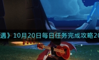 《光遇》游戏中10月20日每日任务已经更新了,玩家们需要完成向一位朋友招手,在云野重温先祖的美好回忆,收集绿色光芒,收集30点烛光,很多玩家不知道怎么完成,那么今天小编就给大家介绍一下光遇10月20日每日任务完成攻略2022,有需要的小伙伴不要错过了。 《光遇》10月20日每日任务完成攻略2022任务一:向一位朋友招手 0/1 完成方法:点击屏幕上方中间动 找到招手动作面对好友点击并完成招手即可注:1~6级招手动作均可完成 任务二:在云野重温先祖的美好回忆 0/1 完成方法:点燃先祖重温回忆位置:云野 蝴蝶平原先祖:引蝶人 [动作] 任务三:收集30点烛光 0/30 完成方法:1.领取任务2.靠近地图当中点燃的蜡烛上方的烛光/净化黑暗植物后的烛光 收集30滴即可 任务四:收集绿色光芒 0/1 完成方法:靠近光芒
