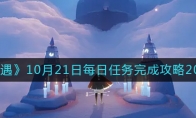 《光遇》游戏中10月21日每日任务已经更新了,玩家们需要完成向一位朋友招手,在雨林重温先祖的美好回忆,拯救一只被黑暗藤蔓困住的遥鲲,在秘密花园里冥想,很多玩家不知道怎么完成,那么今天小编就给大家介绍一下光遇10月21日每日任务完成攻略2022,有需要的小伙伴不要错过了。 《光遇》10月21日每日任务完成攻略2022任务一:向一位朋友招手 首先我们需要获得招手动作,招手动作在云野最后一张图的先祖兑换获得。当我们获得招手动作后,找到一个在线的好友,传送到他身边。然后在动作列表中选择招手动作,面对好友做出招手动作即可。任务二:在雨林重温先祖的美好回忆 进入雨林地图中,开启第一个门的机关,进入,进入之后,正前方就是第二道门,第二道门左边就有一个先祖,走过去就会看到,这就是发抖先祖,点亮先祖就可以重温先祖的美好回忆了。