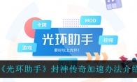 光环助手怎么加速封神传奇?很多小伙伴在玩封神传奇的时候都嫌弃太慢了,今天小编给大家带来了《光环助手》加速封神传奇方法介绍,感兴趣的小伙伴一起来看看吧,希望可以帮助到大家。《光环助手》封神传奇加速办法介绍一、如何安装1、下载“光环助手”并打开,在左下角找到游戏分区。2、搜索“封神传奇”,然后选择自己想要玩的版本进行下载安装。不需要ROOT!二、如何加速1、启动在光环助手下载的《封神传奇》后(必须从光环助手下载),能看到光环助手悬浮窗。2、点击光环助手悬浮窗即可找到加速页面。根据版本不同最高倍速也不同(常规最高15倍,如下图所示)。以上就是小编整理的关于《光环助手》封神传奇加速办法介绍的全部内容,更多游戏攻略请持续关注3DM手游网!