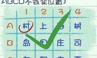 微信烧脑游戏4已经出来了,好多小伙伴在玩这个脑洞大开的解谜游戏时经常不知道怎么过关,为了消除这种局面,小编带来了微信烧脑游戏4的关卡攻略来帮助大家。下面是第62关的通关攻略。微信烧脑游戏4第62关通关攻略 题目:下图中,先将1列4列对调,再将C行和A行对调,再将2列和4列对调,C2位置上应该是哪个字?(注意1234ABCD不会变位置) 答案:“村”,题目中的“对调”。