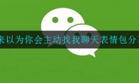 最近在网上又兴起了一组关于沈腾的聊天表情包,很多小伙伴都和想知道这个表情包在哪可以找到,今天小编给大家带来了本来以为你会主动找我聊天表情包分享,感兴趣的小伙伴一起来看看吧。本来以为你会主动找我聊天表情包分享1、本来以为你会主动找我聊天2、可没想到你如此能忍3、不装了4、我太想你忍不住以上就是小编整理的关于本来以为你会主动找我聊天表情包分享的全部内容,更多游戏攻略请持续关注3DM手游网!