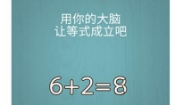 烧脑大作战用你的大脑让等式成立这一关还是很好过的,把等号后面的3,另外半边旋转出来。,这样就变成了8,6+2=8,等式就对了。 烧脑大作战游戏第95关攻略:题目:用你的大脑让等式成立吧。答案:等式后面的3另外半边旋转出来,组成8即可通关。