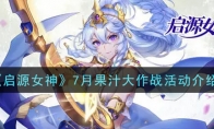 《启源女神》的7月果汁大作战活动是新上线的活动,相信还有很多小伙伴不是很清楚7月果汁大作战活动是什么,下面3DM小编就给大家带来了《启源女神》7月果汁大作战活动介绍,一起看看吧!《启源女神》7月果汁大作战活动介绍活动时间: 7月8日10:00-7月21日23:59活动详情: 在这炎热的夏季,女神想要为您亲手制作冰凉的橙汁消暑,却没有足够的原材料。请天选者挑战组队副本收集橙子,女神将为您送上爽口的饮品和丰厚的奖励!以上是小编整理的《启源女神》7月果汁大作战活动介绍,不知道大家还喜欢吗?记得点击收藏3DM手游网,更多精彩内容实时更新。