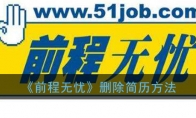 在前程无忧平台中创建了简历之后,别的公司招聘的人就可以看到我们的简历信息了。那么当我们想要删除简历的时候该怎么弄呢?其实方法也很简单。下面小编就来为大家介绍一下前程无忧删除简历的方法,快一起来看看吧! 前程无忧怎么删除简历?1、进入前程无忧网页版,登录自己的账号后,点击“简历中心”。 2、在简历中心内,可以看到我们创建的简历,然后找到想要删除的简历,点击后面的“删除”。 3、确定删除这份简历吗?我们点击“确定” 4、这样就可以成功删除简历了,返回简历中心,后台将不再显示这份简历。 以上就是小编带来的前程无忧怎么删除简历?删除简历方法了,更多相关资讯教程,请关注3DM手游网。