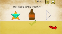 《最囧游戏》还可以第18关:把图形归位到对应的虚线内;可能星星、酒瓶大家都能够轻松放到虚线当中,而三角形因为方向问题,怎么也放不进去。这个关卡大家忽略了一个重点,就是五角星可以组成很多三角形,而关卡问题只要求把图形放到对应的虚线内,所以答案如下图所示。