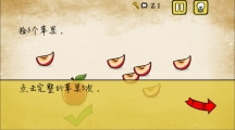 《最囧游戏》还可以第24关:捡5个苹果;还可以难度的最后一个关卡,提供了一个完整的苹果和六瓣切好的苹果,要求我们捡5个苹果。去捡地上切好的苹果肯定是不行的,所以这关点击完整的苹果5次就可以了。