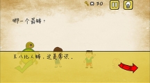 《最囧游戏》有点悬第1关 解锁屏幕就是一个障眼法,游戏的时候需要联系实际,不要被屏幕中的图片所干扰。因此,可选答案就只有王八了,王八本来就是比人矮的动物。最囧游戏有点悬第1关:那一个最矮?