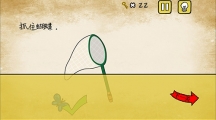 《最囧游戏》有点悬第7关 抓住蝴蝶,这里确实有点坑,但是只要稍微变通一下就可以迅速的过关了,问题是要我们抓住蝴蝶,但是给了一个网口和蝴蝶飞行方向一致的捕捉网,这无疑是在扰乱我们的路,所以,你只要毫不犹豫的在屏幕上面点击蝴蝶就可以过关了。最囧游戏有点悬第七关抓住蝴蝶: