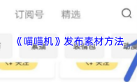 在喵喵机app中发布素材,可先打开应用并登录账号,进入首页后点击右下角“我的”进入个人中心,接着找到并点击“素材广场”相关入口,再点击“发布素材”按钮,按提示选择要发布的素材类型,上传素材并填写相关描述信息,最后点击“发布”即可完成素材发布。喵喵机怎么发布素材?1、首先我们下载好喵喵机APP后,打开软件的主界面,接下来我们进入下一层界面。2、再点击软件下端的【广场】按钮,接下来我们进入下一层界面。3、再点击右上角的【加号】按钮,我们接下来进入下一层界面。4、然后点击【发布素材】按钮,我们进入下一层界面。5、图片可以选择多张,选择好之后,就点击红框框内的【确定】按钮,接下来我们进入下一层界面。6、然后点击【发布】即可,然后素材就自动存到了我的素材里了。7、最后我的素材里面就在【我的】界面中显示出来了,下次直接使用