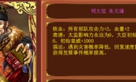 赵匡胤技能:右文抑武:所有臣子武力-5,统御-5,智慧+5,道德+5,政治+5,魅力+5,科举考生数量+2,所有臣子俸禄*3。手不释卷:皇子和臣子智慧增长每次额外+1,皇帝读书文学每次额外+2。河清军士:在京士兵会同时添加到临时工匠,可供使用。杯酒释兵权:外派部队和知府不会谋反,任何国策类导致臣子俸禄增加的效果都将无效,皇威上限+200,皇威+1000。 皇帝成长计划2赵匡胤 右文抑武:所有臣子武力-5,统御-5,智慧+5,道德+5,政治+5,魅力+5,科举考生数量+2,所有臣子俸禄*3手不释卷:皇子和臣子智慧增长每次额外+1,皇帝读书文学每次额外+2河清军士:在京士兵会同时添加到临时工匠,可供使用。杯酒释兵权:外派部队和知府不会谋反,任何国策类导致臣子俸禄增加的效果都将无效,皇威上限+200,皇威+1000建