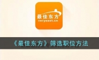 用户通过最佳东方筛选职位,从而找到最符合自己要求的职位,大家在使用软件的过程中根据自己的需求进行操作即可。下面小编就为大家带来了在最佳东方app中筛选职位的方法介绍,感兴趣的小伙伴们可以跟小编一起来了解下。 最佳东方怎么筛选职位?1、首先打开最佳东方,进入首页; 2、在求职意向的下方找到筛选选项; 3、点击之后即可弹出筛选页面,根据自己的需求筛选职位。 以上就是小编带来的最佳东方怎么筛选职位?最佳东方筛选职位方法,更多相关资讯教程,请关注3DM手游网。