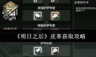 明日之后皮革怎么获取?明日之后中皮革作为护甲工专属半成品,也是我们玩家的必需品,明日之后皮革怎么获得呢?那么下面我们一起来看看具体的获取步骤。希望可以帮助到您。《明日之后》皮革获取攻略在明日之后游戏中,最快捷的获取皮革方式就是前往交易摊位购买。玩家可以前往快乐101的交易城或者贸易之城的广场找到交易摊位,打开交易窗口后选择资源列表中的半成品分类,在页面底部就能找到各种类型的皮革。选中需要的皮革后,在右侧选择购买数量,使用金条即可完成交易。如果选择自行制作皮革,需要准备兽皮、硝石、胶带和黄麻叶这四种材料。兽皮可以通过在秋日森林、远星城等地击杀动物获得;硝石需要在个人庄园的矿机中使用合金钻头开采;胶带可以在营地达到蒸汽时代后找护甲店店长莉莎购买,或在交易之城向其他玩家购买;黄麻叶可在交易之城购买或前往白树高地采集麻