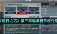 《明日之后》游戏中第三季瞄准器是什么?明日之后全新的第三季已经这是开启了,其中加入了全新的瞄准镜,很多小伙伴可能还不知道,那么接下来小编为大家带来《明日之后》第三季瞄准器系统介绍,一起来看看吧。《明日之后》第三季瞄准器系统介绍一、瞄准镜系统 第三季新增瞄准镜系统,安装任意类型、任意阶级的瞄具后,武器可解锁瞄准镜效果。不同的武器可以解锁不同的瞄准镜效果,支持瞄准镜的武器为,狙击枪、步枪、冲锋枪,幸存者们可以通过背包,查看和调整瞄准镜相关配置,选择适合自己的瞄准镜。二、瞄准镜展示 红点瞄准镜适用于狙击枪、步枪、冲锋枪,红点瞄准镜可增加命中率、扩大视野,建议冲锋枪和步枪近距离作战使用。全息瞄准镜适用于狙击枪、步枪、冲锋枪,建议冲锋枪和步枪近距离作战使用。2倍镜适用于狙击枪和步枪。4倍镜适用于狙击枪、步枪。6倍镜仅适用