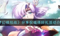 梦幻模拟战游戏中的分享祝福得好礼活动是新上线的活动,相信还有很多小伙伴不是很清楚分享祝福得好礼活动内容奖励是什么,下面小编就给大家带来梦幻模拟战分享祝福得好礼活动介绍,感兴趣的小伙伴不要错过啦。分享祝福得好礼活动介绍节日悄然来临,美好的祝愿随着雪花和铃铛声洒向大地~【活动时间】 12月24日10:00-12月25日23:59 【活动内容】 活动期间,登录游戏并分享节日弹板,可获得圣魔晶奖励!详细规则见活动内说明。以上就是小编整理的梦幻模拟战分享祝福得好礼活动介绍的全部内容了,想知道更多相关资讯攻略的请关注3DM手游网。