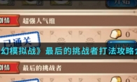 在梦幻模拟战手游中最后的挑战者怎么打呢?这是梦幻模拟战新活动盛夏人气狂想曲剧情第八关,那么想知道最后的挑战者打法攻略的就跟随小编一起来看看吧。 小编推荐:《梦幻模拟战》盛夏人气狂想曲活动内容介绍 最后的挑战者打法攻略 以上就是小编整理的梦幻模拟战最后的挑战者打法攻略介绍,想知道更多相关资讯攻略的请关注3DM手游网。