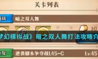 在梦幻模拟战手游中暗之双人舞怎么打呢?这是梦幻模拟战新活动盛夏人气狂想曲挑战第四关,那么想知道暗之双人舞打法攻略的就跟随小编一起来看看吧。小编推荐:《梦幻模拟战》盛夏人气狂想曲活动内容介绍 暗之双人舞打法攻略介绍: 以上就是小编整理的梦幻模拟战暗之双人舞打法攻略介绍,想知道更多相关资讯攻略的请关注3DM手游网。