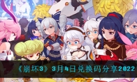 崩坏3的官方会不定期发放一些兑换码供大家领取奖励,很多小伙伴都很想知道最近新发布的3月7日兑换码内容是什么,今天小编给大家带来了《崩坏3》3月7日兑换码分享,感兴趣的小伙伴一起来看看吧。 《崩坏3》3月7日兑换码分享2022无光遗址礼包: JA7LLRY8HSP7礼包内容 金币*20000、高级进化材料箱*2、双子灵魂结晶*3兑换时间 有效期至2022年3月5日0:00小贴士:同名礼包每个账号仅限领取一次,兑换码有使用期限,请舰长尽快领取!以上就是小编整理的关于《崩坏3》3月7日兑换码分享的全部内容,更多游戏攻略请持续关注3DM手游网!