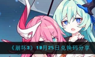 崩坏3的官方会不定期发放一些兑换码供大家领取奖励,很多小伙伴都很想知道最近新发布的10月25日兑换码内容是什么,今天小编给大家带来了《崩坏3》10月25日兑换码分享,感兴趣的小伙伴一起来看看吧。《崩坏3》10月25日兑换码分享严霜再临礼包码:4B72JWJL6EH7礼包内容金币*20000、体力药水*2、特级学习芯片*3兑换时间有效期至10月29日23:59小贴士:同名礼包每个账号仅限领取一次,兑换码有使用期限,请舰长尽快领取!以上就是小编整理的关于《崩坏3》10月25日兑换码分享的全部内容,更多游戏攻略请持续关注3DM手游网!