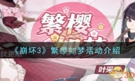 《崩坏3》手游中的繁樱如梦活动是新上线的补给活动,相信还有很多小伙伴不是很清楚繁樱如梦活动是什么。下面小编给大家带来《崩坏3》繁樱如梦活动介绍,感兴趣的小伙伴们一起来看看吧。>>>小编推荐:《崩坏3》2021年礼包兑换码大全 《崩坏3》繁樱如梦活动介绍本次精准补给A为樱桃炸弹的推荐武器「睡美人」与批判之笔套装「狄更斯」。精准补给B为樱火轮舞的推荐武器「樱花的誓约」与评论者套装「叶采章」。同时,「狄更斯」和「叶采章」在对应精准补给开始时将开启许愿池。======UP时间====== 活动期间内,所有装备均有一定概率获取;指定装备UP时间内,该装备的获取概率提升! ※本次活动中,指定武器/圣痕在UP时间内,相比同星级的武器/圣痕,UP武器/圣痕的获取概率更高※指定武器/圣痕在UP时间外,相比同星