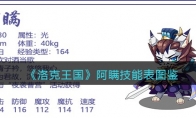 《洛克王国》是一款轻松好玩的休闲类手游,游戏中拥有海量的宠物精灵,阿瞒怎么样,厉害吗?下面3DM手游网小编给大家带来了《洛克王国》阿瞒技能表图鉴介绍,想要知道该宠物信息的小伙伴速来围观吧!>>>>小编推荐:洛克王国宠物图鉴大全>>>>小编推荐:洛克王国活动汇总《洛克王国》阿瞒技能表图鉴技能表技能类型威力PP效果气吞山河武系物理11012造成物理伤害同时,极大机率使对手进入混乱或恐惧状态,并降低其1级物防。先手+1对酒当歌水系变化012何以解忧,唯有杜康。大概率麻痹对方并删除对方上次使用技能3PP,同时回复自身精力;对方若免疫则回复效果翻倍。先手+4天下归心光系变化04求贤若渴,天下归心。净化自身并回复精力,强化自身,暂时免疫异常状态与负面强化4回合。先手+5幽灵反