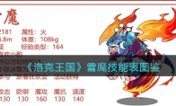《洛克王国》是一款轻松好玩的休闲类手游,Q萌的游戏画风,玩家将被置身于一个精彩的世界中!游戏中拥有海量的宠物精灵,下面3DM手游网小编给大家带来了《洛克王国》雪魔技能表图鉴介绍,想要知道【雪魔】信息的小伙伴速来围观吧!>>>>小编推荐:洛克王国宠物图鉴大全>>>>小编推荐:《洛克王国》十八系精灵王大全《洛克王国》雪魔技能表图鉴以上就是3DM小编整理带来的《洛克王国》雪魔技能表图鉴,大家还喜欢吗?更多精彩内容,请点击关注3DM手游网,小编将持续为您更新!