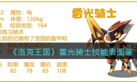 《洛克王国》雷光骑士怎么样,厉害吗?游戏中宠物角色非常多,【雷光骑士】宠物的技能属性是什么,该如何配招呢?下面3DM手游网小编就给大家带来了《洛克王国》雷光骑士技能表图鉴介绍,一起看看吧!>>>>小编推荐:洛克王国宠物图鉴大全 >>>>小编推荐:《洛克王国》十八系精灵王大全 《洛克王国》雷光骑士技能表图鉴 进化路线: 闪电勇者→雷光骑士→霹雳统领→圣电雷王→天极圣雷王以上就是3DM小编整理带来的《洛克王国》雷光骑士技能表图鉴,大家还喜欢吗?更多精彩内容,请点击关注3DM手游网,小编将持续为您更新!