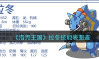 《洛克王国》拉冬怎么样,厉害吗?游戏中宠物角色非常多,【拉冬】宠物的技能属性是什么,该如何配招呢?下面小编就给大家带来了《洛克王国》拉冬技能表图鉴介绍,一起看看吧!>>>>小编推荐:洛克王国宠物图鉴大全>>>>小编推荐:洛克王国活动汇总《洛克王国》拉冬技能表图鉴以上就是3DM小编整理带来的《洛克王国》拉冬技能表图鉴介绍,大家还喜欢吗?更多精彩内容,请点击关注3DM手游网,小编将持续为您更新!
