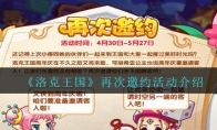 洛克王国再次邀约活动怎么玩呢?这是4月30日上线是五一活动之一,大家知道这个是如何玩的吗,奖励是什么?下面小编就给大家带来了《洛克王国》再次邀约介绍,感兴趣的小伙伴一起看看吧!>>>>小编推荐:洛克王国宠物图鉴大全《洛克王国》再次邀约活动介绍再次邀约还记得上次小樱同她的伙伴们一起来到王国和大家一起度过美好时光吗?洛克王国周年庆在不久之后又将来临,可丽希亚公主也说周年庆要邀请客人!让我们在露西亚的帮助下再次邀请他们来王国做客吧!活动时间:4月30日-5月27日活动地图:宴会厅活动获得:预约道具(请宝宝们妥善保管哦!)以上就是3DM小编整理带来的《洛克王国》再次邀约活动介绍,大家还喜欢吗?更多精彩内容,请点击关注3DM手游网,小编将持续为您更新!