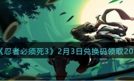 忍者必须死3游戏中大家可以通过礼包兑换码兑换福利,这是大家每日获取额外资源的重要途径,每天的激活码礼包都是不一样的呢,2023年2月17日最新兑换码为:第九届家族联赛开战。下面是小编给大家带来的忍者必须死3兑换码2月17日2023年,忍三2023.2.17礼包激活码领取分享,想要领取福利的小伙伴一起围观领取吧!>>>>小编推荐:《忍者必须死3》兑换码大全2023>>>>小编推荐:《忍者必须死3》兑换码大全2022《忍者必须死3》2月17日兑换码领取2023兑换码:第九届家族联赛开战每个兑换码只能使用一次,已经兑换过的伙伴不用再次使用了!礼包码领取方法地址:1、网页领取地址是:http://statistics.pandadastudio.com/player/gi