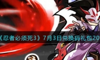 《忍者必须死3》是一款非常火爆的忍者横版动作手游巨作,游戏上线以来官方、B站、公众号等不定时会有各种礼包发放,下面是3DM小编给大家带来的忍者必须死3兑换码7月14日2022,7.14日礼包兑换码在哪领介绍,想要领取福利的小伙伴一起围观吧!>>>>小编推荐:《忍者必须死3》兑换码大全2022《忍者必须死3》7月14日兑换码礼包2022兑换码:龙毫笔书写十年传说(有效期2022年7月11日—7月17日)兑换码:阿力阿力生日快乐礼包码领取方法地址:1、网页领取地址是:http://statistics.pandadastudio.com/player/giftCodeView(苹果用户只能网页领取!)2、使用安卓设备的忍忍领到地址:游戏主界面点击右上方设置>兑换码输入兑换码文字领取,点