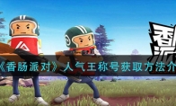 在香肠派对游戏中很多玩家还不清楚,人气王称号的获取条件是什么。接下来就让小编给大家带来《香肠派对》人气王称号获取方法介绍,感兴趣的小伙伴们一起来看看吧。《香肠派对》人气王称号获取方法介绍【称号获取方法】 1、当玩家的粉丝数量上升到地区排名前列的话,就可以获得这个人气王的称号了。2、比如你的粉丝数量在广东排名第50位,那么你就可以获得“广东第50人气王”的称号了。3、因此想要获得这个人气王的小伙伴只能去增加自己的粉丝数量了,除此之外没有其他方法。粉丝增加方法 1、其他玩家进入你的主页之后,点击关注你就成为你的粉丝了。2、因此大家如果想要增加自己的粉丝,就得让更多的玩家去关注你。以上就是《香肠派对》人气王称号获取方法介绍的全部内容了,更多手游攻略请关注3DM手游网!