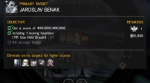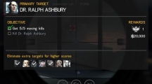 这一关要求我们快速完成三连击杀,为了完成这个任务我们得去寻找扎堆站在一起的三个敌人,等待了一会之后,在时间到达8:42左右,在下图这个位置可以快速击杀图中的3个敌人,完成这个目标之后就是去攒分数了。在下图位置快速击杀这三个人,先杀喝酒的人再去杀两个保安会比较保险些 右边屋顶的狙击手还是要杀掉,不能让他打乱你的进程,分数够了最后去杀主要目标即可。 第二章 第1关 第2关 第3关 第4关 第5关 第6关 第7关第8关 第9关 第10关 第11关 第12关 第13关 第14关 第15关 第16关 第17关 第18关 第19关 第20关
