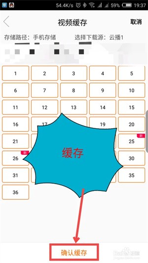3、在缓存选择页面,可勾选单集或多集视频进行下载。