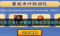《火影忍者手游》游戏官方不定时有活动推出,各种礼包也跟着上线,半藏秽土转生忍法帖礼包在哪领取呢?下面就是3DM小编给大家带来的《火影忍者手游》2020年半藏秽土转生忍法帖礼包领取介绍了,一起看看吧!>>>>小编推荐:《火影忍者》手游2020年礼包兑换码大全 《火影忍者手游》半藏秽土转生忍法帖礼包领取时间:10.23-10.25领取地址: 点击进入(手机端打开领取)礼包内容: 领取规则: 1、在活动期间内新注册的玩家可领取注册礼,限领1次2、在10月9日前登录过游戏的老用户可领取木叶助战礼,限领1次3、活动期间完成相应任务即可参与本页面积分兑换活动,限领1次以上就是小编带来的《火影忍者手游》半藏秽土转生忍法帖礼包领取介绍了,更多相关内容请持续关注3DM手游网!