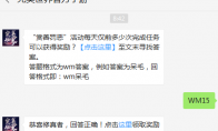 “赏善罚恶”活动每天仅前多少次完成任务可以获得奖励?完美世界手游5月20日每日一题更新啦,小编相信一定有很多玩家们都不知道答案吧,感兴趣的玩家,下面就跟着小编一起来看看完美世界手游5月20日每日一题答案吧。>>>推荐阅读:《完美世界手游每日一题答案大全》 5月20日每日一题 “赏善罚恶”活动每天仅前多少次完成任务可以获得奖励? 答案: wm15 每日一题进入方法 1.打开微信2.搜索 完美世界官方手游3.关注公众号4.点开 仙魔福利-每日一题即可答题每日一题答题活动规则 1、关注《完美世界》手游官方微信公众号;2、绑定微信账户并成功答对问题,可进入抽奖页面进行奖励抽取;3、每个账号每天仅可抽奖一次,未答题时无法参与抽奖;4、奖励直接发送至游戏邮箱,如遇到延迟未到账,请尝试重新登录领