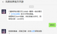 几颗相同的魂石可以合成一颗高一级的魂石?完美世界手游5月21日每日一题更新啦,小编相信一定有很多玩家们都不知道答案吧,感兴趣的玩家,下面就跟着小编一起来看看完美世界手游5月21日每日一题答案吧。>>>推荐阅读:《完美世界手游每日一题答案大全》 5月21日每日一题 几颗相同的魂石可以合成一颗高一级的魂石? 答案: wm3 每日一题进入方法 1.打开微信2.搜索 完美世界官方手游3.关注公众号4.点开 仙魔福利-每日一题即可答题每日一题答题活动规则 1、关注《完美世界》手游官方微信公众号;2、绑定微信账户并成功答对问题,可进入抽奖页面进行奖励抽取;3、每个账号每天仅可抽奖一次,未答题时无法参与抽奖;4、奖励直接发送至游戏邮箱,如遇到延迟未到账,请尝试重新登录领取。以上就是3DM手游网小编