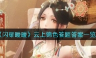 《闪耀暖暖》游戏中云上锦色答题活动答对后就可以获取奖励,那么今天小编就给大家介绍一下闪耀暖暖云上锦色答题答案一览,有需要的小伙伴不要错过了。 《闪耀暖暖》云上锦色答题答案一览1、灿若云锦云锦2、纯棉3、 双人4、意匠图5、木6、5厘米7、蚕丝8、南京9、金银10、缠枝牡丹以上就是《闪耀暖暖》云上锦色答题答案一览,更多游戏攻略请持续关注3DM手游网!