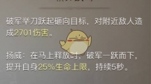 破军,在战国志里是一个不择不扣的战士,极易上手,身法灵活,体格巨肉。想必深受广大玩家喜爱,那么今天小编为大家带来破军的各项详细基础信息和套装搭配吧!破军——前排肉盾 舞刀破军:重要的近战输出技能。在马上释放时可以自由移动,在马下释放伤害来的更快一点,各有优劣。飞刀掠敌:非常好用的远程限制技能,能对敌人造成减速,伤害也比较客观,追击逃命必备。横刀跃马:从马上一跃而下的先收技,下马后短时间提升自身生命值上限,让自己生存得到保障。 半月流风:蓄力技,中远距离的输出技能,在马上释放时可以自由移动,伤害比较客观。气壮山河:控制技能,伤害和自身生命上限相关,最好配合横刀跃马使用,杀人越货必备。金戈铁马:上马技,可以在战斗中上马,技能伤害一般。基础连段:横刀跃马,气壮山河,舞刀破军,金戈铁马。先手下马跳进人群,增加自身生命上