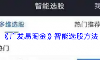 打开广发易淘金APP,进入个股页面或全部服务页面,点击“智能选股”选项,然后根据自己的投资偏好和策略设置选股条件,如五日主力资金、交易量等,最后点击“查看结果”即可获取筛选后的个股列表,帮助用户快速找到符合自己投资策略的股票。广发易淘金怎么智能选股?1、打开广发易淘金主页,点击右上角【全部】2、进入全部服务页面,点击下方【智能选股】3、进入智能选股界面,点击选股条件,然后点击底部【查看结果】4、进入选股结果页面即可查看到筛选的个股。以上就是小编带来的广发易淘金怎么智能选股?智能选股方法,更多相关资讯教程,请关注3DM手游网。