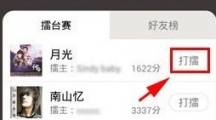 打擂是全民K歌里的一个功能玩法,当你觉得自己有实力超过别人的作品得分时,你可以通过打擂,和其他用户比拼,如果你的得分比别人高,那么你就赢了!打擂模式的具体玩法如下。全民K歌打擂玩法介绍: 1、首先大家需下载全民K歌软件,才能够打擂台,与好友PK。安装完成后,点击主界面的打擂,如图。 2、接下来出现的画面则是K歌画面,请点击进入K歌模式。 3、进入K歌模式以后,大家请倾情演唱自己喜爱的曲目,录制完毕后系统会自动打分,并点击上传。如果你唱的好听,所得的分数比擂主高,那么擂主就是你的啦~ 4、点击上传后,即可分享自己K歌的曲目以及成为擂主。 5、PK成功的你,已经成为擂主啦! 全民K歌打擂就是这么简单啦,赶紧召集自己的小伙伴们挑战K歌吧,如果你够自信也可以直接挑战热门K歌里的挑战赛,小编看好你哦!