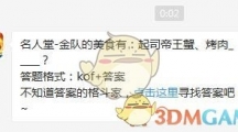 每日一题每日更新,今天为大家带来的是《拳皇98终极之战OL》5月28日每日一题答案,题目为:名人堂-金队的美食有:起司帝王蟹、烤肉_____?还不知道的小伙伴一起来寻找答案吧! 【每日一题答案汇总】5月28日每日一题问题: 名人堂-金队的美食有:起司帝王蟹、烤肉_____?答题格式:kof+答案不知道答案的格斗家,寻找答案吧~5月28日每日一题答案: 答案:kof(稍后更新)格斗家美食各有所好,了解之后对应收集可以不浪费任何一点资源,如果小伙伴们有需要的就赶快去收集吧,今天的答案已经奉上,可以去微信中抽取奖励了哦。