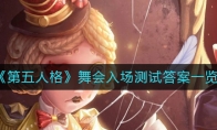《第五人格》游戏中舞会入场测试是万圣节舞会活动的一个小测验,玩家们回答完问题之后可以选择舞伴,那么今天小编就给大家介绍一下第五人格舞会入场测试答案一览,有需要的小伙伴不要错过了。 《第五人格》舞会入场测试答案一览1、问题:你想和喜欢的人一起度过怎样的万圣夜?参考答案:鸡尾酒,乐曲,假面舞会。 2、问题:更喜欢舞伴身上的什么味道?参考答案:优雅清爽的木质调香。 3、问题:在找舞伴的路上你误入一座月下迷宫,穿过迷宫你会看见什么?参考答案:某人灿烂的笑容。 4、问题:故事中,你对以下哪种种族更感兴趣?参考答案:巫师一族。 5、问题:如果时间可以逆转,结局可以改变,重来一次你会做什么?参考答案:活的尽兴,优先满足自我身心。 以上就是《第五人格》舞会入场测试答案一览,更多游戏攻略请持续关注3DM手游网!