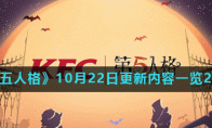 《第五人格》10月22日更新了什么?第五人格在10月22日迎来了维护更新,很多小伙伴都在关注本次更新后会加入哪些全新的玩法和活动,那么接下来小编为大家带来《第五人格》10月22日更新内容一览2020,一起来看看吧。 《第五人格》10月22日更新内容一览2020一、肯德基联动特别活动 闻到那熟悉的香味了吗?肯德基联动特别活动即将开启,完成活动任务可以获得[独特时装]调香师一MissK以及其他丰厚的游戏内奖励,喜欢的访客们,请不要错过。活动时间:2020年10月22日维护后一2020年11月15日23:59:5910月26日开始,KFC会售卖联动专属套餐.购买后可以获得礼包码,玩家兑换后即可在游戏中领取“KFC美味硬市”,进入游戏中活动页面可将[独特时装]调香师一Miss K升级为奇珍品质。活动时间:2020年10