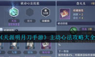 天涯明月刀手游主动心法有哪些?主动心法在游戏中能够为玩家提供很多的增幅,极大的增强玩家的实力。很多小伙伴不知道天涯明月刀手游主动心法有哪些。下面小编给大家带来《天涯明月刀手游》主动心法攻略大全,希望能帮助到小伙伴们哦。 《天涯明月刀手游》主动心法攻略大全1、凌骨:提升自身攻击,持续10秒。(蓝色心法)2、长天:回复自身气血。(蓝色心法)3、八荒·泽雨:这是天香绝学,每个门派不同。技能效果:天香绝学,增加全队受治疗效果,持续15秒。(紫色心法)4、宁玉碎:提升自身攻击和摧息率,持续15秒。(紫色心法)5、拂心火:提升自身攻击和会心率,持续15秒。(紫色心法)6、震天岳:提升自身攻击和瞬击率,持续15秒。(紫色心法) 7、冥流毒:对目标造成持续伤害,并降低目标移动速度。(紫色心法)8、淬火·流毒:对目标扔出毒镖,造