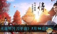 小编给大家带来了天涯明月刀手游的每日一题更新,今天的问题是“祭神乐歌,祈请平安;侠者有命,切勿沉吟。愿海潮皆能定,人间风雨平。本期奖池的名称是?”,输入正确答案就可以获得微信公众号的奖励,下面小编给大家带来《天涯明月刀手游》7月29日每日一题每日一题,感兴趣的小伙伴一起来看看吧。《天涯明月刀手游》7月29日每日一题一、问题祭神乐歌,祈请平安;侠者有命,切勿沉吟。愿海潮皆能定,人间风雨平。本期奖池的名称是?二、答案ty风雨时若(ty加答案,中间不能有空格)三、领取方式进入天涯明月刀微信公众号,输入答案就可以去领取奖励了。以上就是小编整理的关于《天涯明月刀手游》7月29日每日一题的全部内容,更多游戏攻略请持续关注3DM手游网!