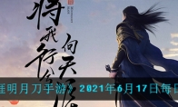 小编给大家带来了天涯明月刀手游的每日一题更新,今天的问题是“无数少侠期待已久的飞蛾主题外装的名字是”,输入正确答案就可以获得微信公众号的奖励,下面小编给大家带来《天涯明月刀手游》2021年6月18日每日一题,感兴趣的小伙伴一起来看看吧。 《天涯明月刀手游》2021年6月18日每日一题一、问题 无数少侠期待已久的飞蛾主题外装的名字是?二、答案 ty辉火鳞荧 (ty加答案,中间不能有空格)三、领取方式 进入天涯明月刀微信公众号,输入答案就可以去领取奖励了。以上就是小编整理的关于《天涯明月刀手游》2021年6月18日每日一题的全部内容,更多游戏攻略请持续关注3DM手游网!